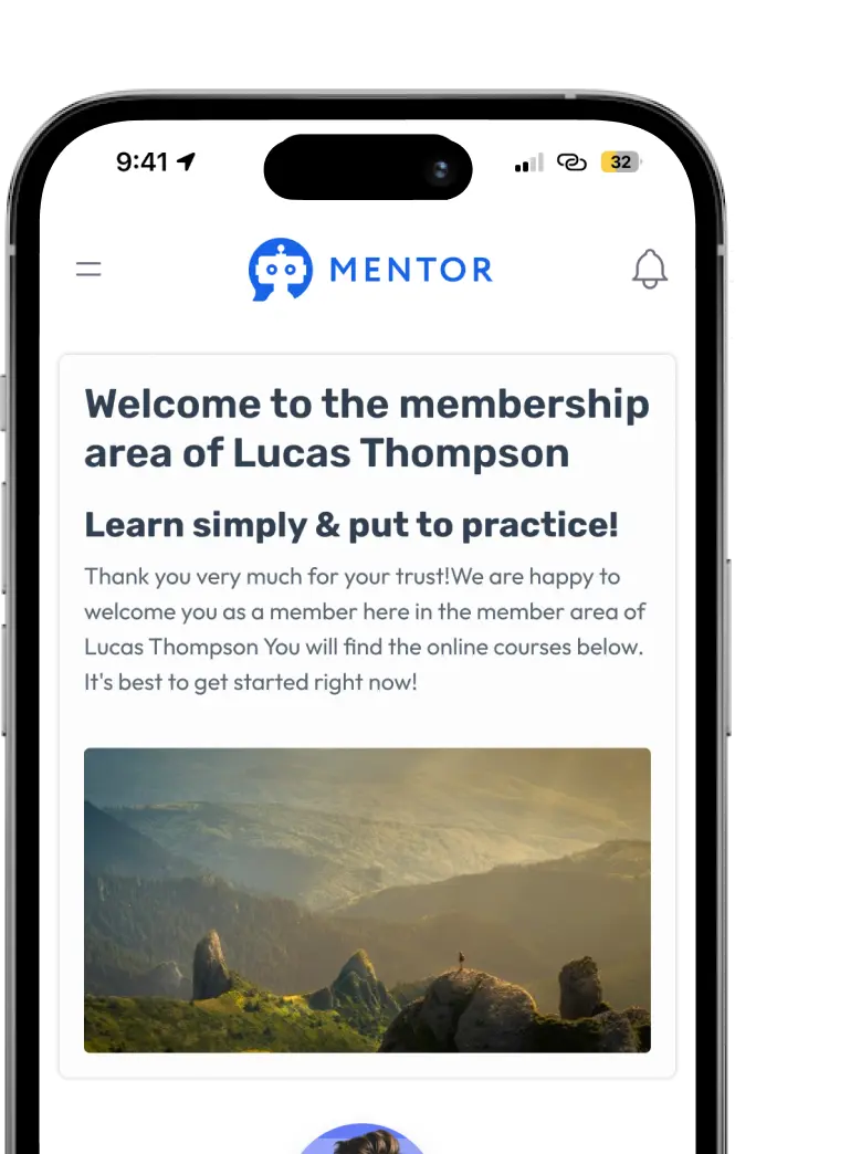 With Mentortools you can get your own app in the Apple App Store and in Google Play. Your members can download the app or you can directly get new members by promoting the app. The users will see your course, events and your community there, and they will receive push notifications from you.